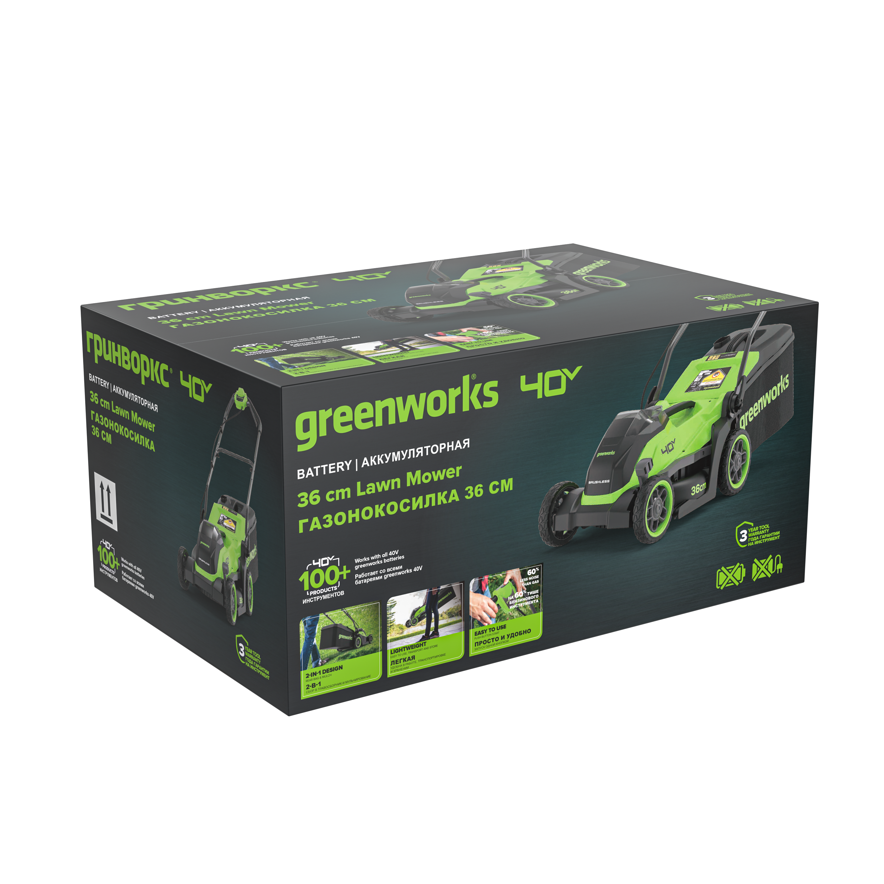 - Платформа: Единая аккумуляторная платформа 40V Greenworks.