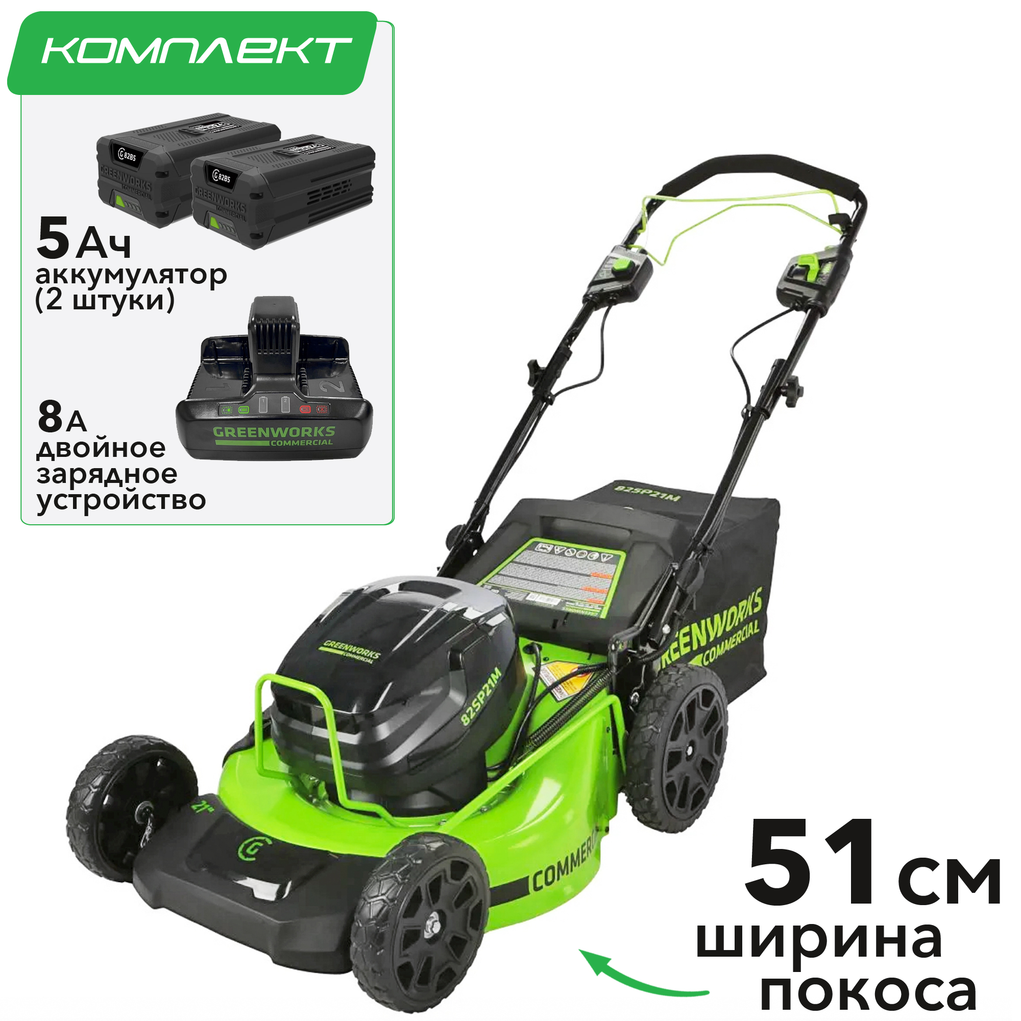 Газонокосилка самоходная Greenworks GC82LM51SP2 82V 2515907 (51 см) бесщеточная аккумуляторная — мощный инструмент из профессиональной линейки!