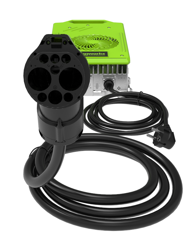 - Зарядное устройство (3 кВт) для райдеров Greenworks 82V (арт. 2961007)
