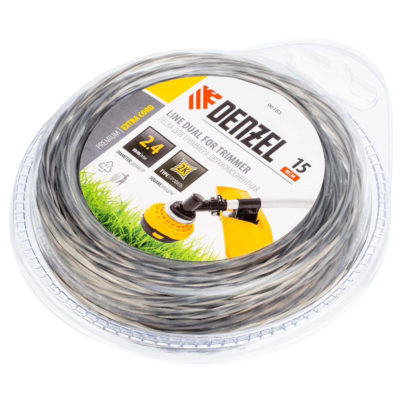 Двухкомпонентная квадратная витая леска Denzel EXTRA CORD 96185 размером 2,4 мм х 15 м предназначена для триммеров с электрическим и бензиновым двигателем мощностью до 1,5 кВт. Подходит как для поддержания красоты газона, так и для срезания высокой сорной травы и зарослей молодого кустарника. Благодаря высокопрочному сердечнику и гибкой внешней оболочке устойчива к нагрузкам и может использоваться на сложных участках.