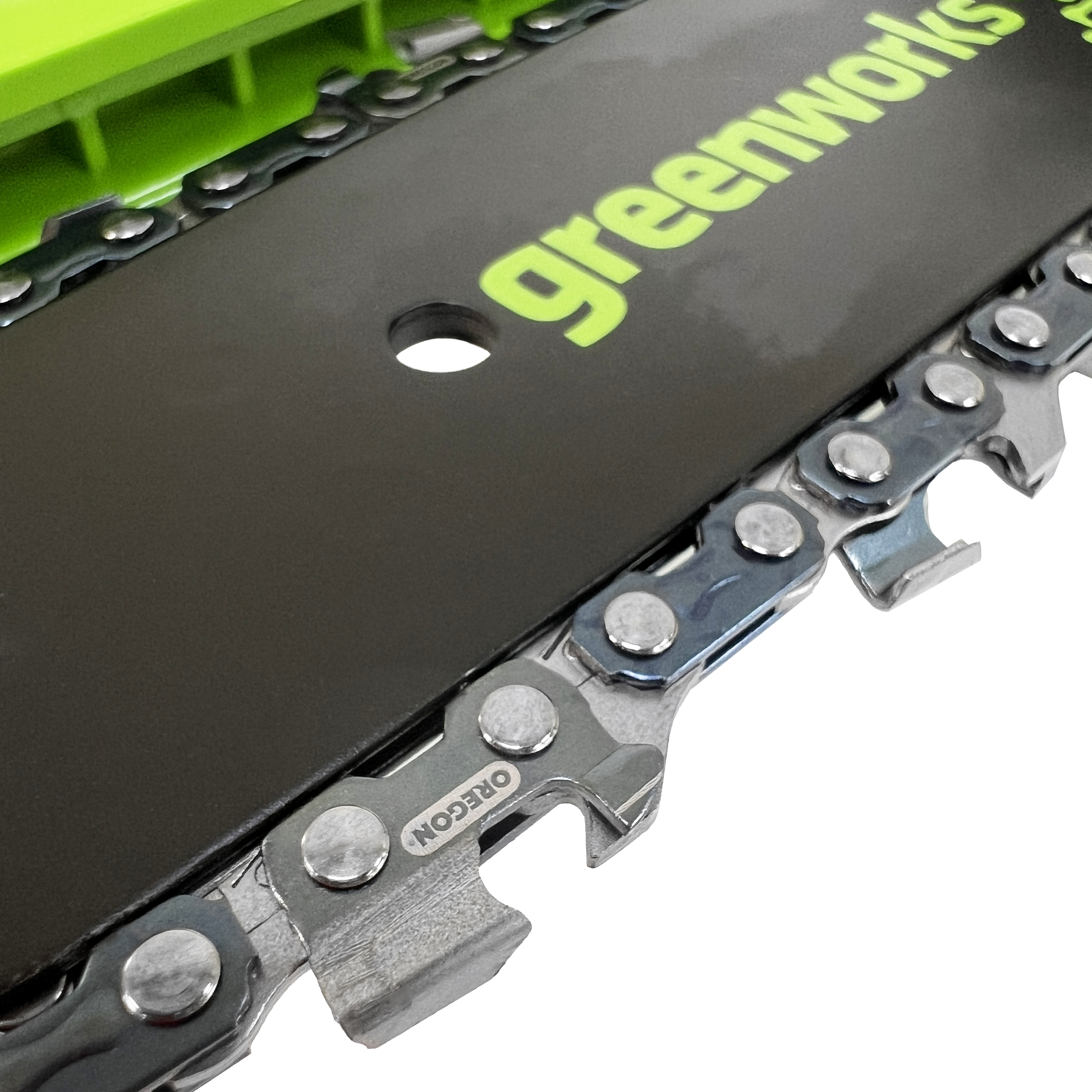 Цепь для аккумуляторной бесщеточной мини-пилы GD24CS15 (арт. 2010107) с автоматической смазкой цепи и встроенным маслобачком. Длина пильной шины 15 см из линейки Greenworks 24V.