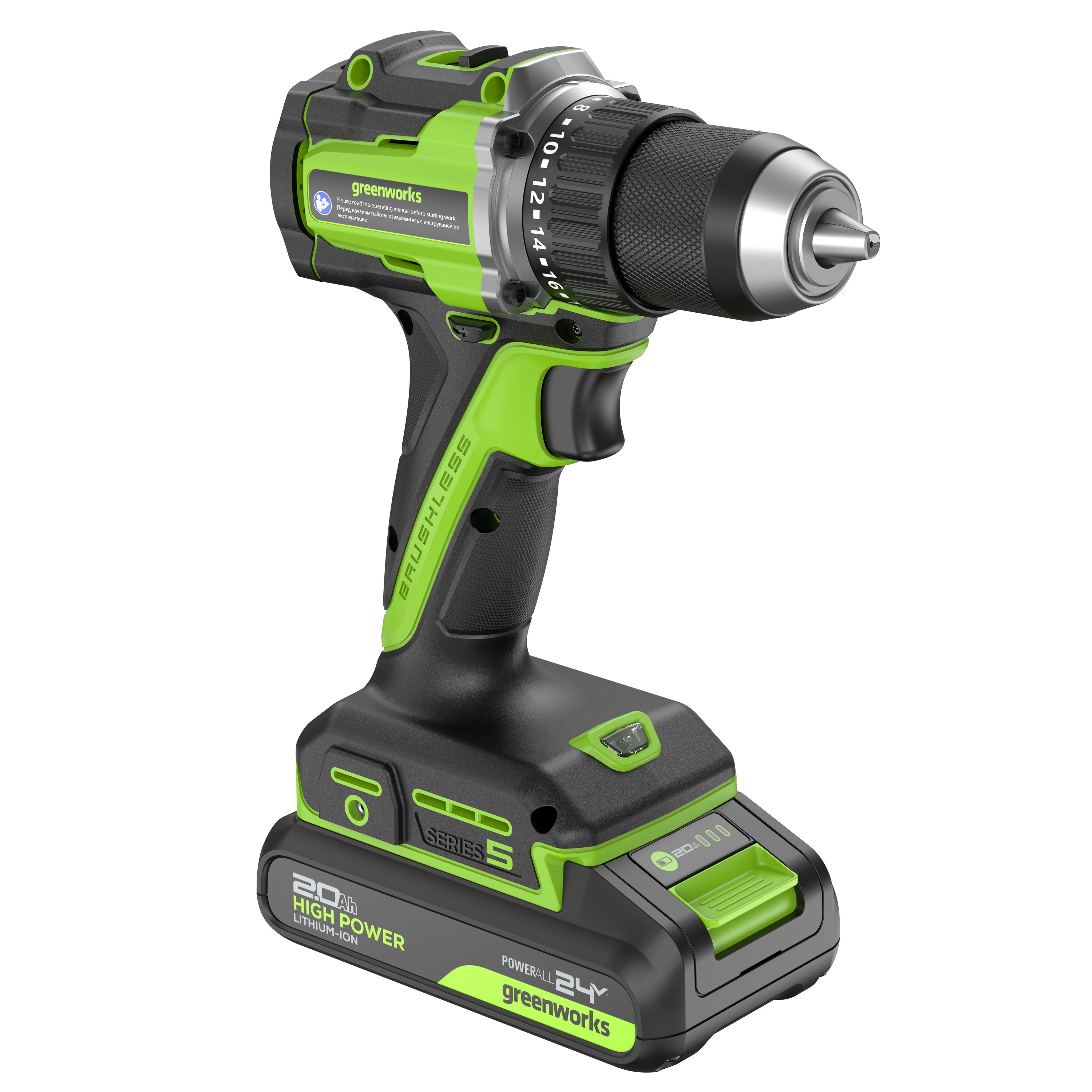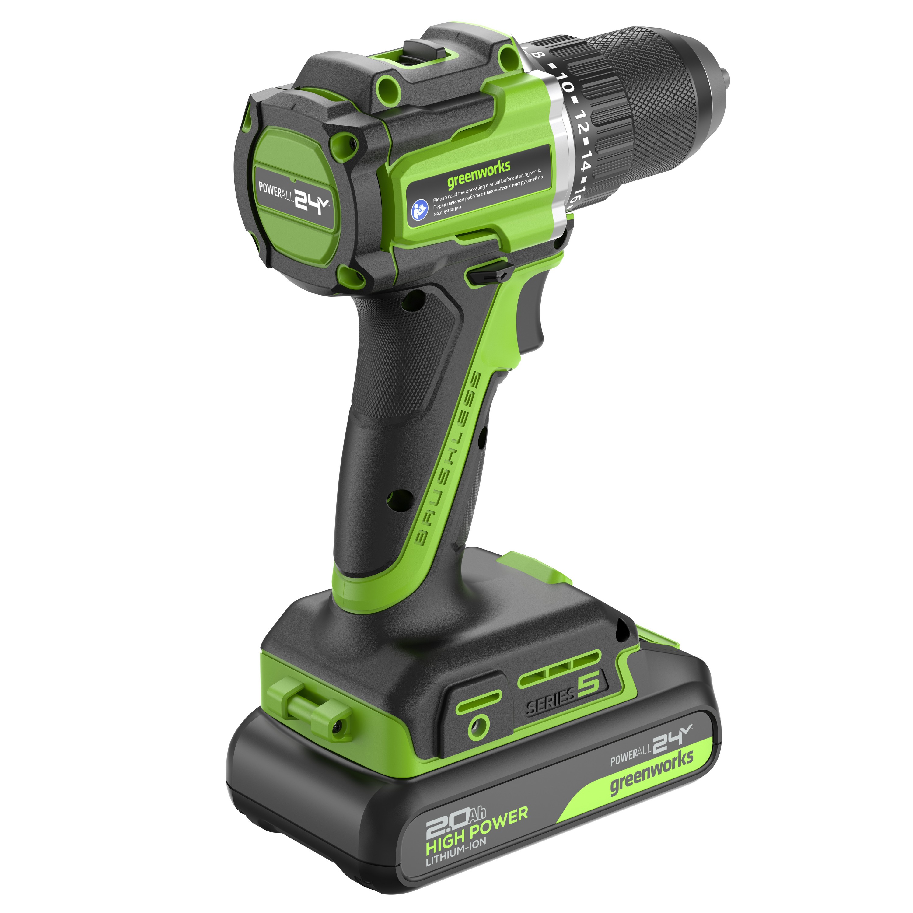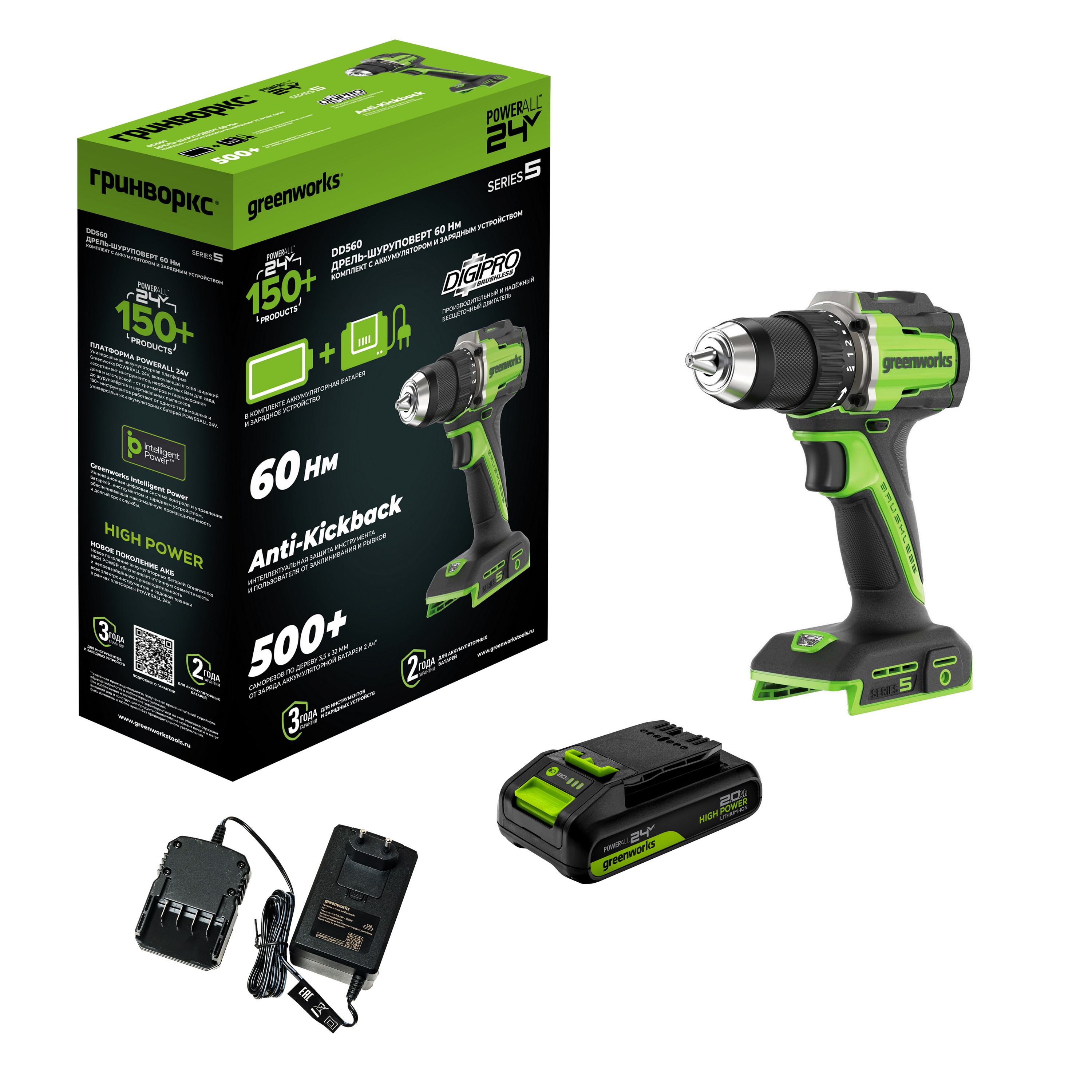 - Дрель-шуруповерт 30/60 Нм бесщеточная аккумуляторная Greenworks 24V DD560 (арт. 3708407)