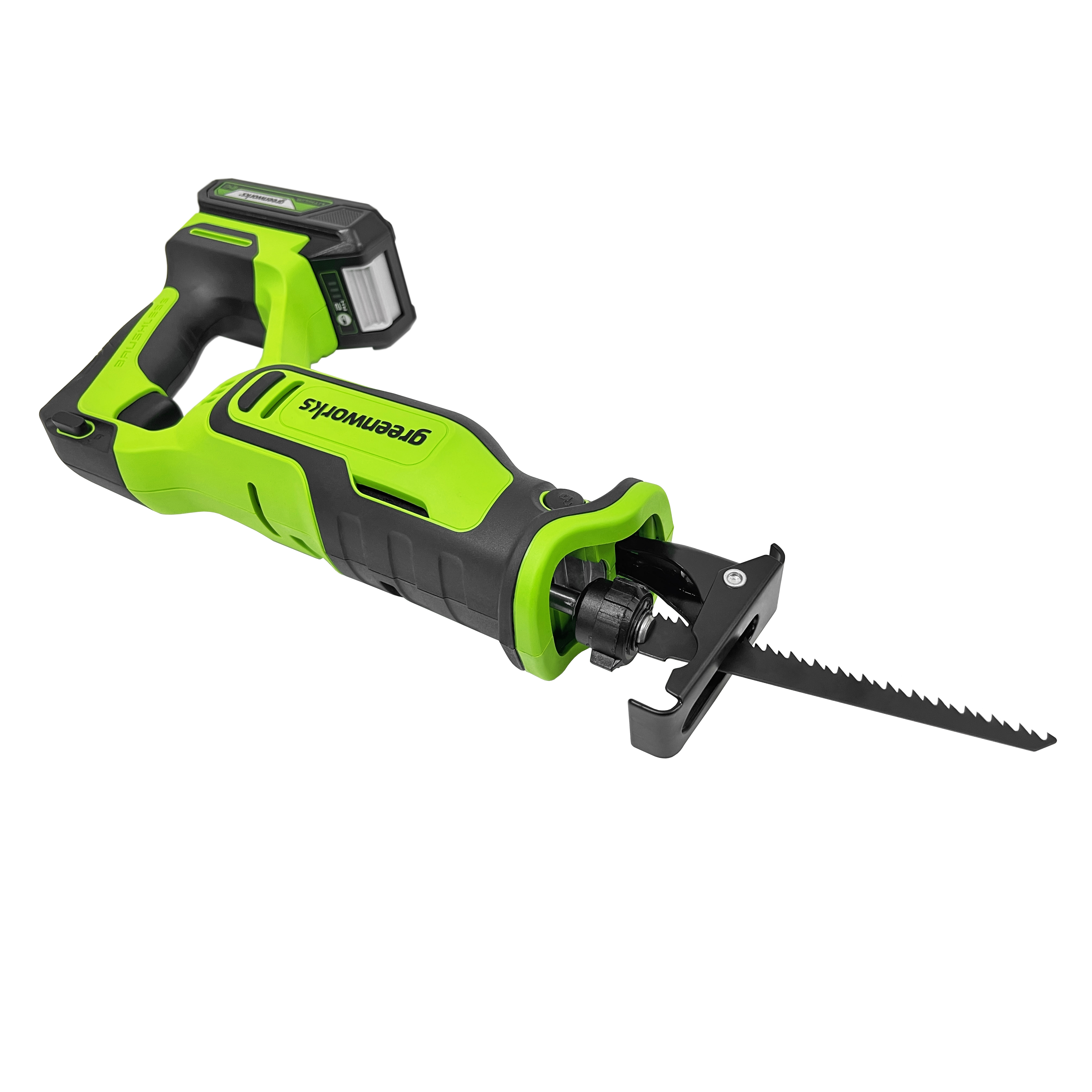 Сабельная пила Greenworks GPT-BLRS-1 (1200607) построена на основе мощного и надёжного бесщёточного двигателя DigiPro™, который эффективно использует энергию аккумулятора и не теряет мощность под нагрузкой.