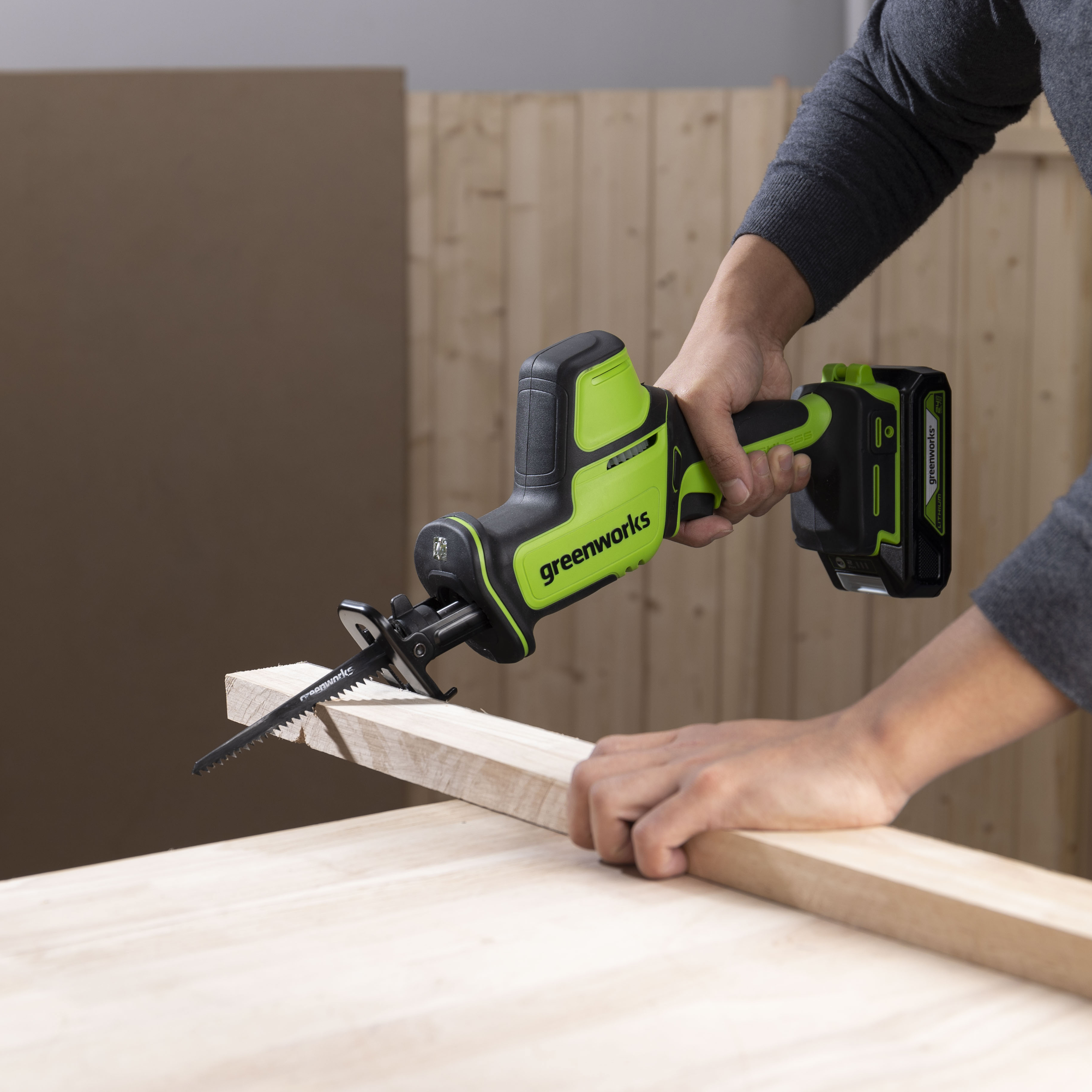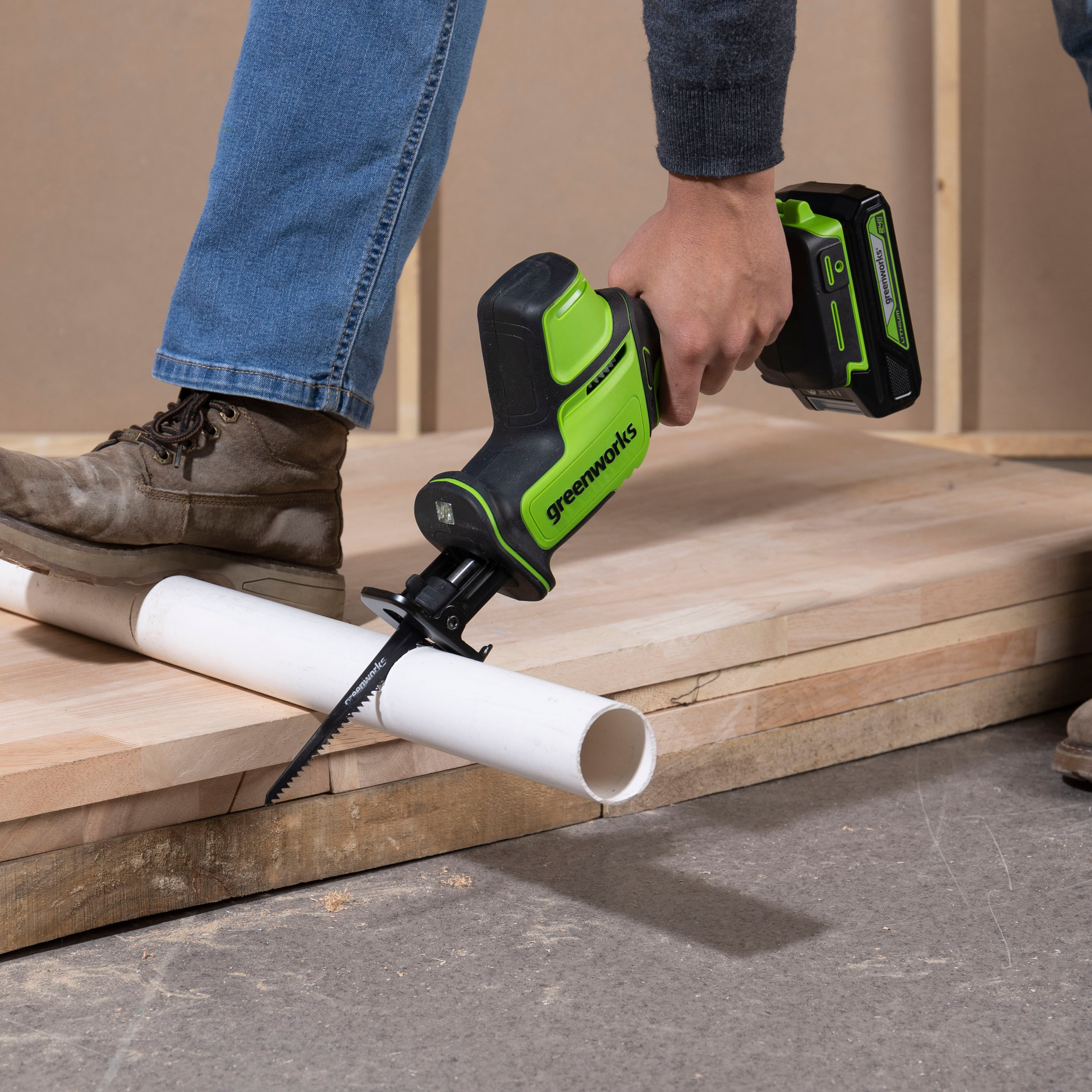 Видео обзор сабельной пилы Greenworks GPT-CRS-25Пила сабельная компактная аккумуляторная Greenworks GPT-CRS-25 (арт. 1200507), 24V, бесщеточная поставляется без аккумуляторной батареи и зарядного устройства.