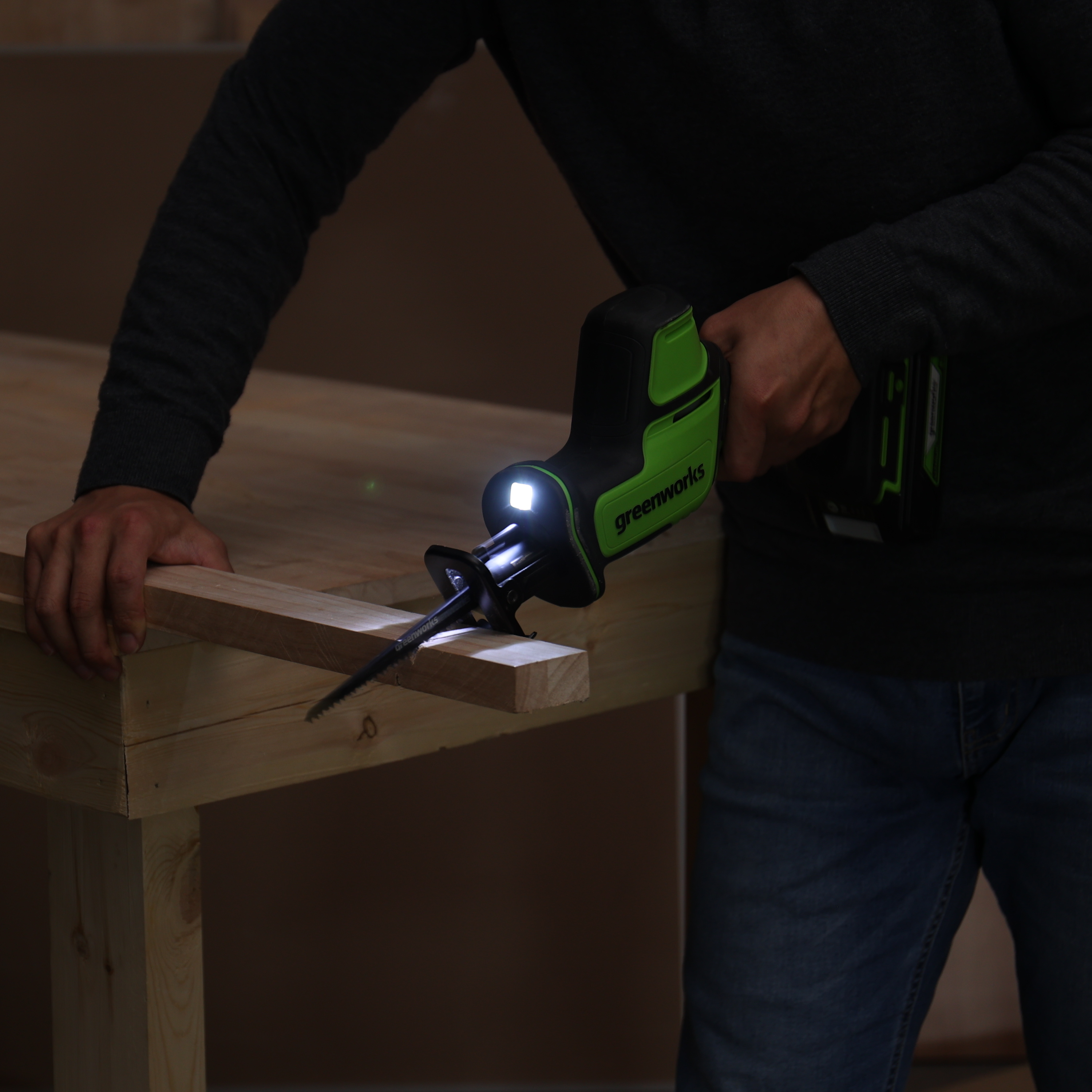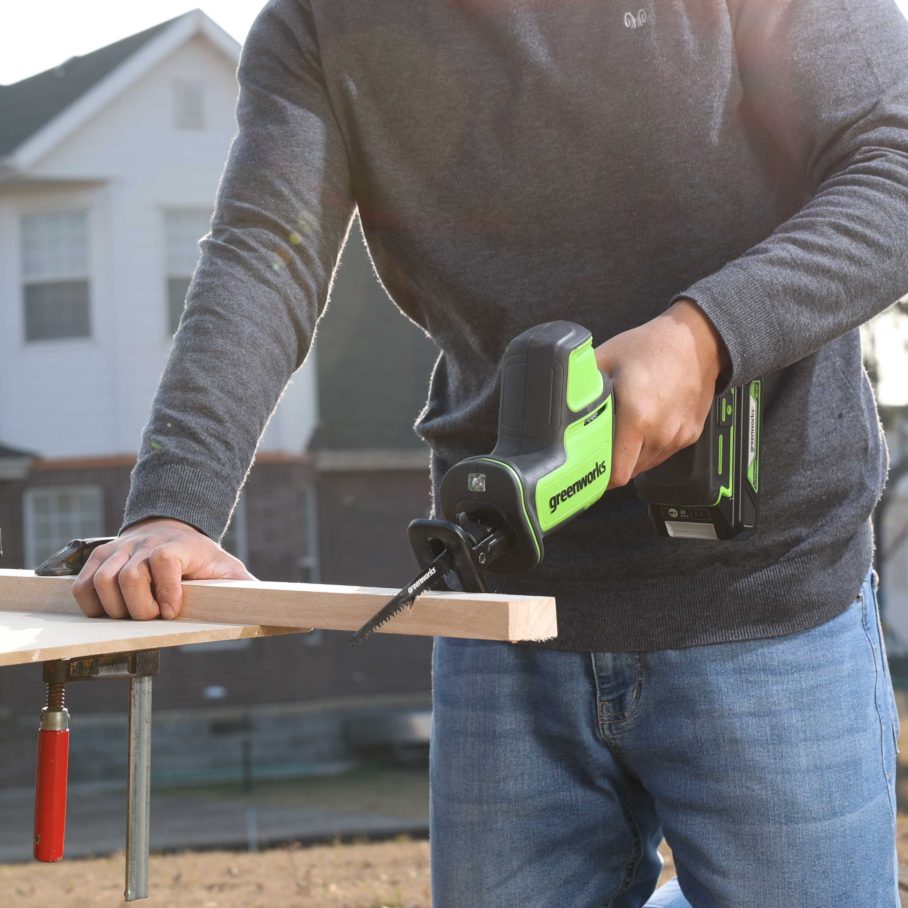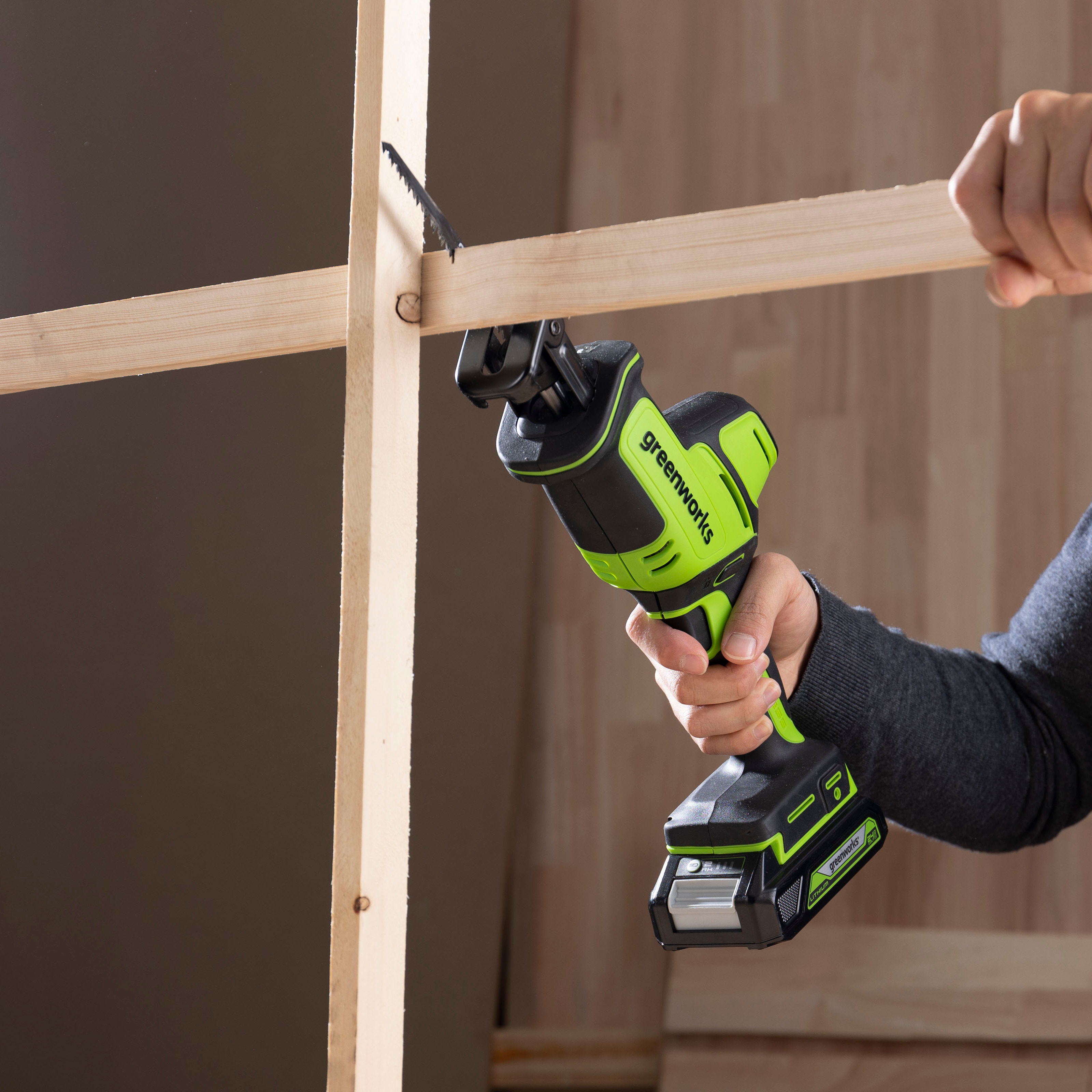 Выключатель с защитой от случайного пуска, защита от перегрузки / перегрева, плавный пуск – компактная аккумуляторная сабельная пила Greenworks GPT-CRS-25 безопасна и комфортна в работе.