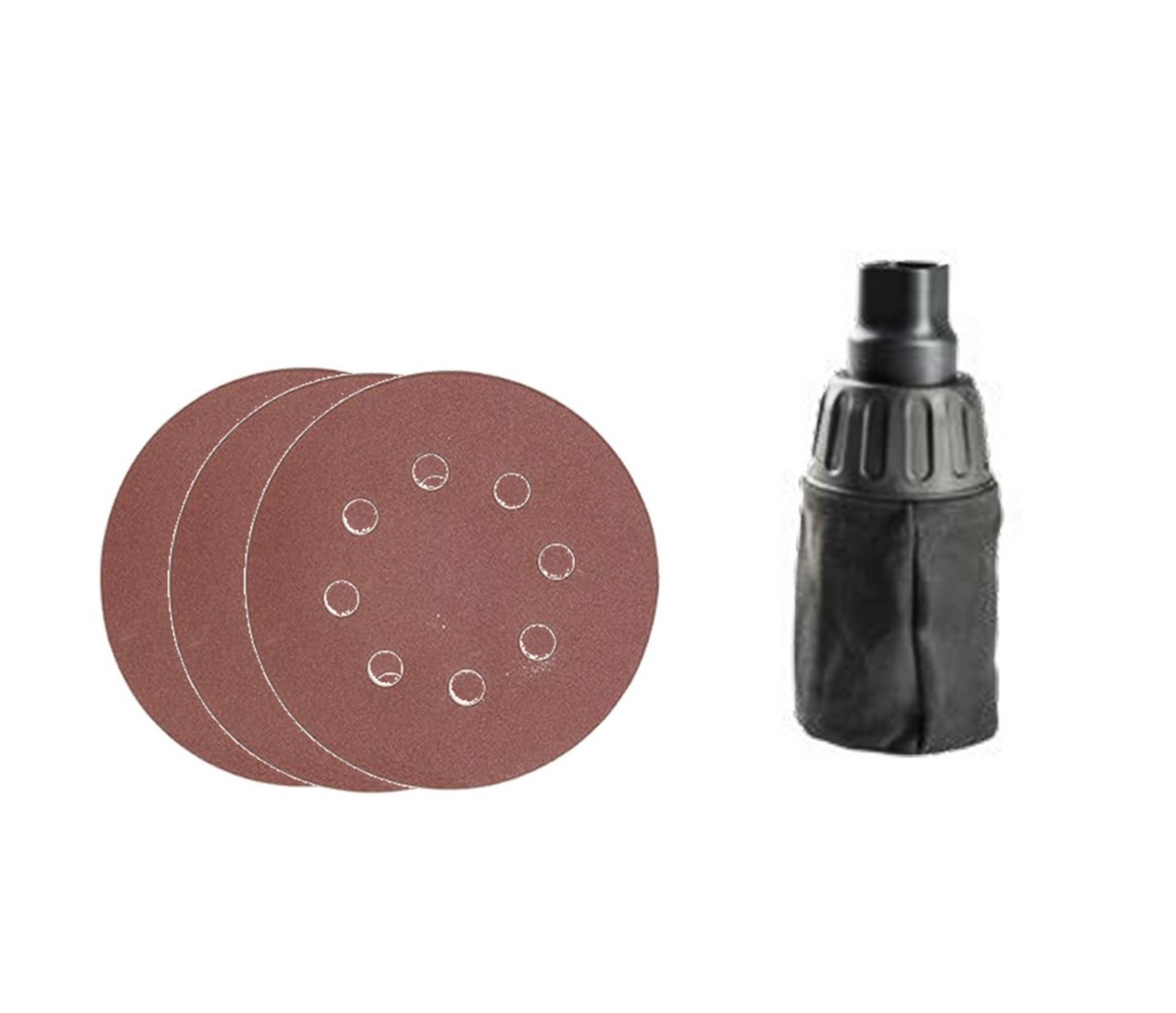 - Пылеудаление: Шлифовальная тарелка с 8 отверстиями для пыли, съемный текстильный пылесборник и патрубок для подключения внешней системы пылеудаления.