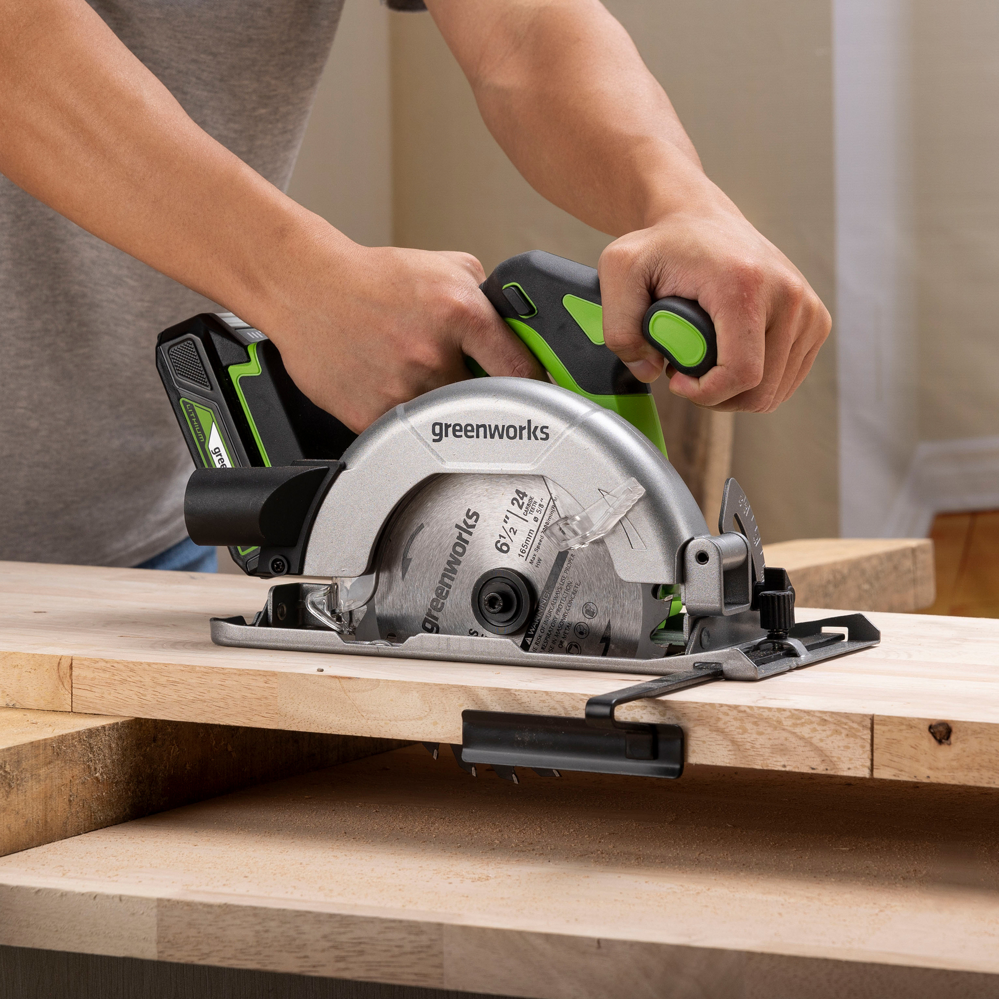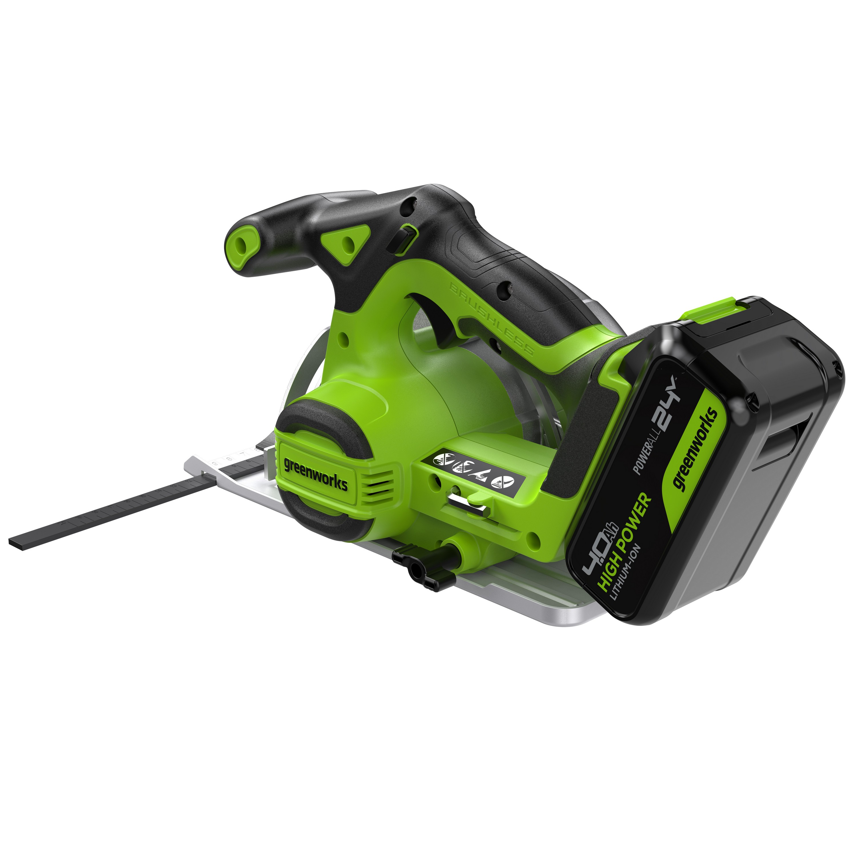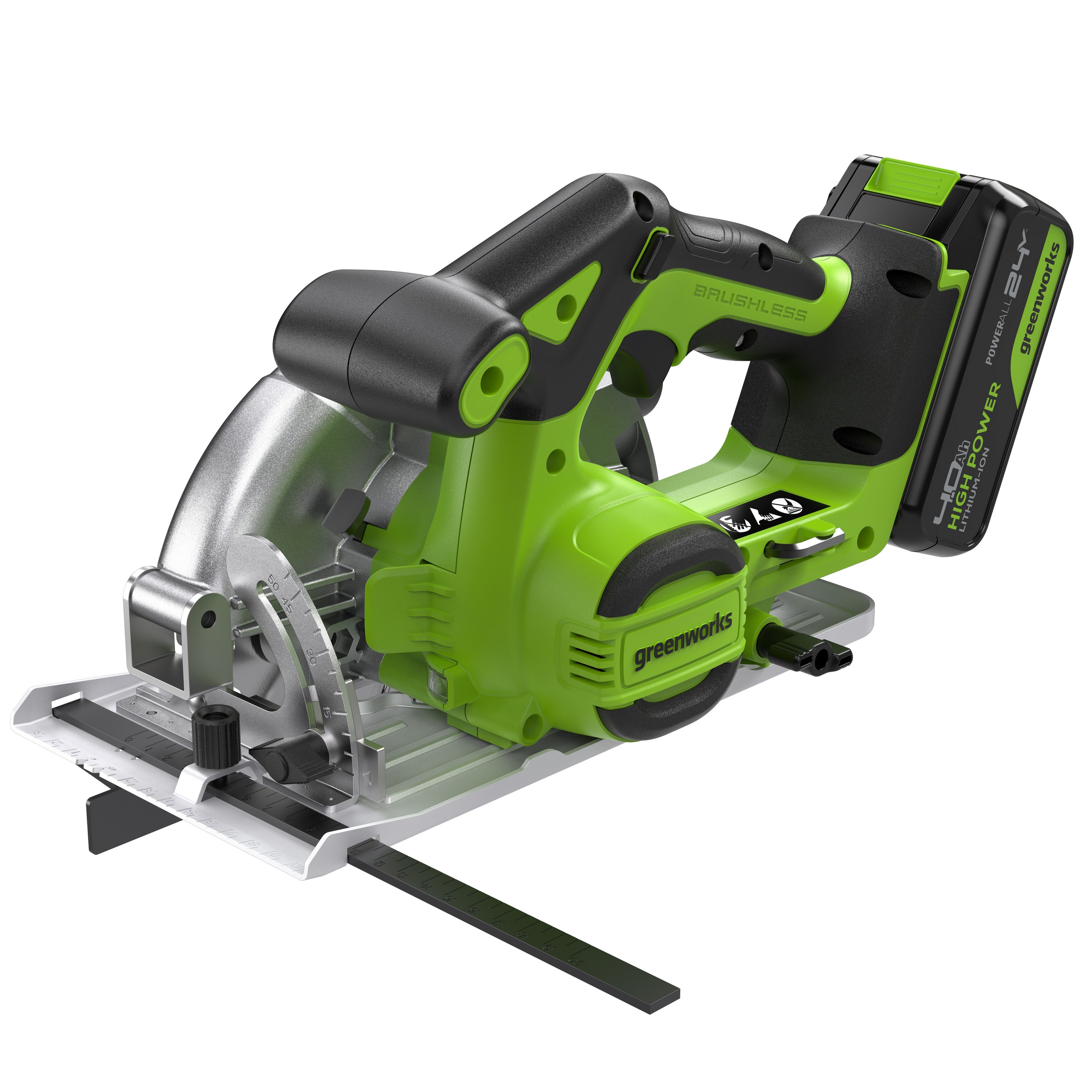 Циркулярная пила Greenworks GD24CS165 24V 1501607 бесщеточная аккумуляторная — циркулярная пила из серии 24V для распила всех видов древесины.