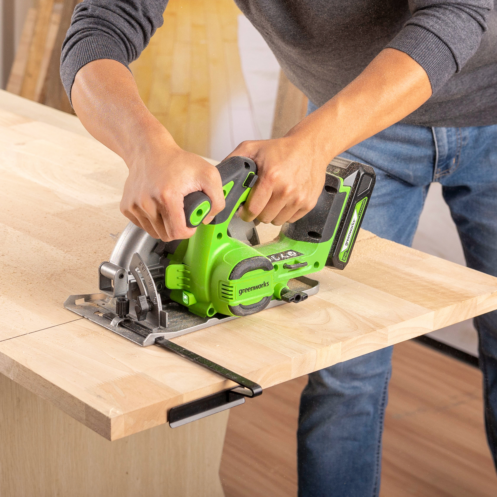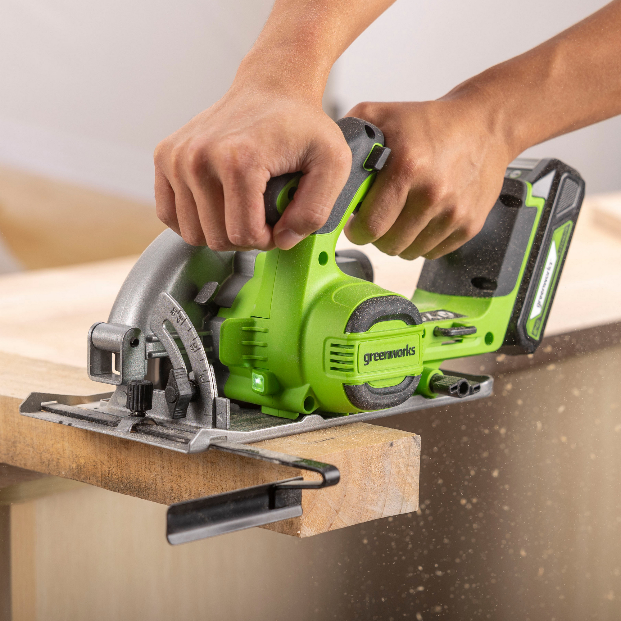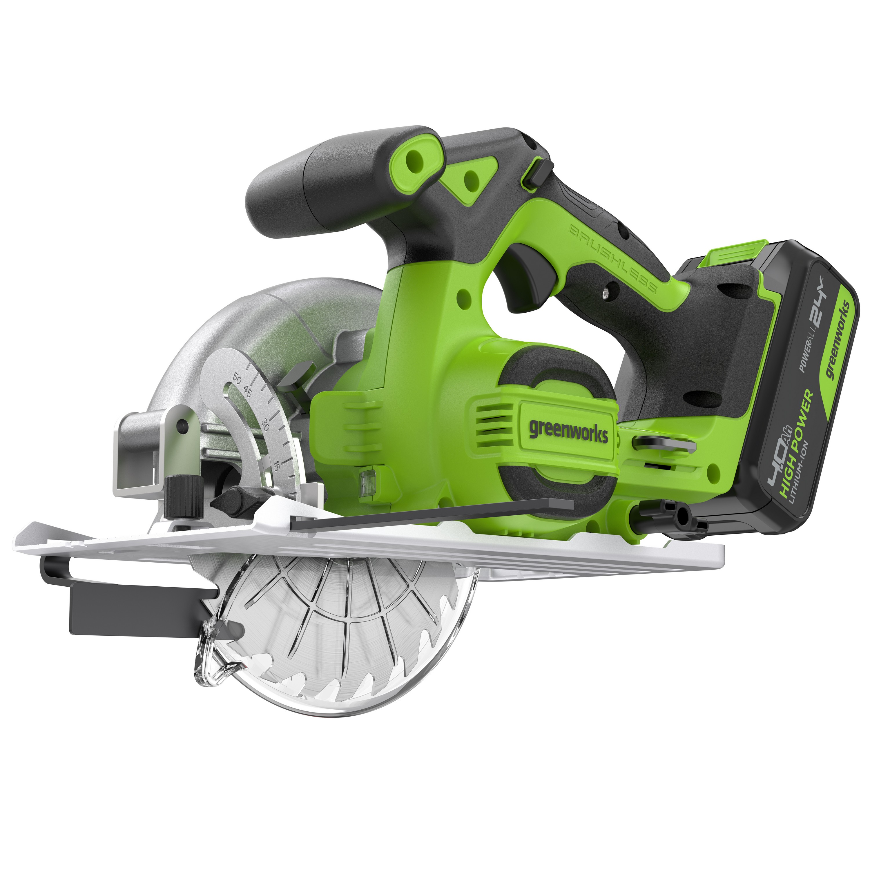 Циркулярная пила Greenworks GD24CS165 24V 1501607 бесщеточная аккумуляторная — циркулярная пила из серии 24V для распила всех видов древесины.