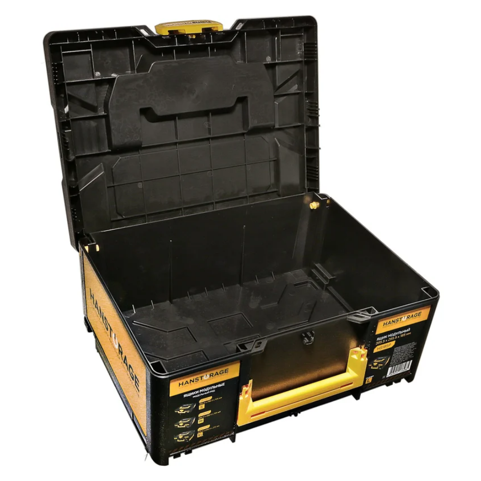Ящик модульный внутри не разделен секциями, что позволяет использовать все внутреннее пространство для хранения максимально эффективно.