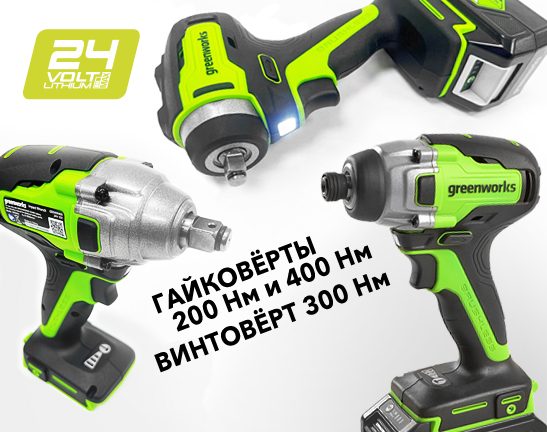 Посмотрите сравнительный видео обзор ударного гайковёрта 400 Нм и импульсного винтовёрта 300 Нм Greenworks 24V